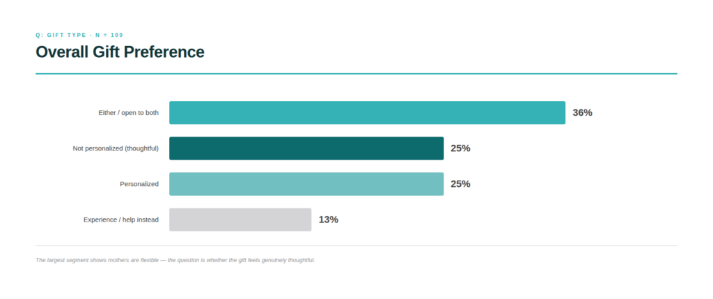 The short answer is: it depends on how it’s done. The survey found that 61% of mums are either open to or actively want personalised gifts. But a big chunk, 36%, were happy either way, as long as whatever they received felt considered.